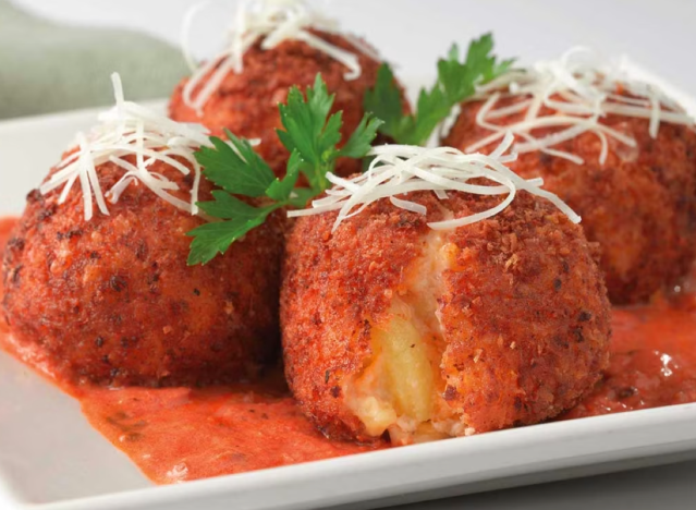 According to the source, Cheesecake Factory’s Fried macaroni and cheese contains about 1,310 calories, 96 g of fat, 47 g of saturated fat and nearly 2,140 mg of sodium. The source describes the dish as deep-fried and “cheesy.”