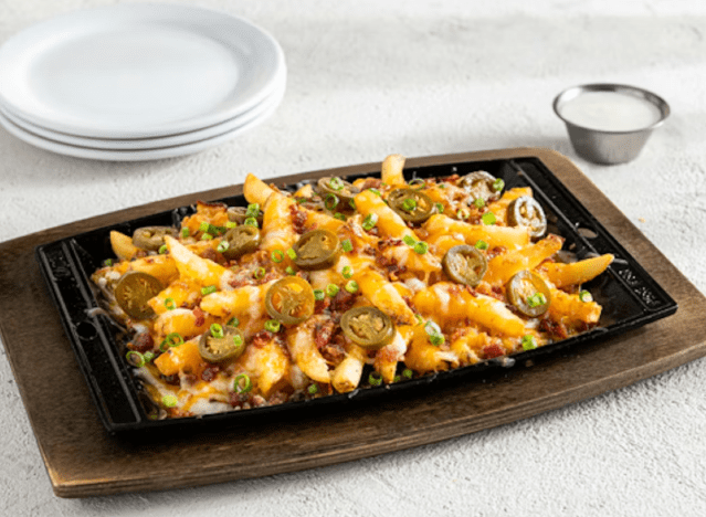 For Chili’s Large Texas Cheese Fries, the source lists about 1,800 calories, 122 g of fat, 51 g of saturated fat and about 5,000 mg of sodium.
