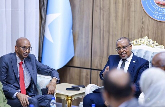 In the thick summer heat of Mogadishu, a meeting that might have gone unnoticed told a larger story about where Somalia’s fragile federal experiment may be heading. On Tuesday, Abdullahi Ali Hirsi Timacadde, the Second Deputy Speaker of Somalia’s Upper House, hosted Dr. Adan Abdullahi Aw-Hassan, the Speaker of the North Eastern State Parliament, for talks that were part ceremony, part signal, and all politics.